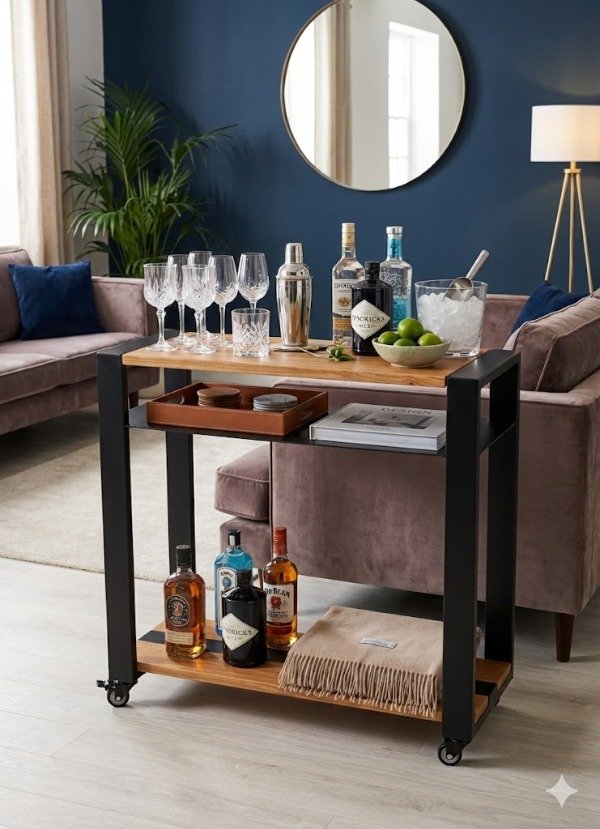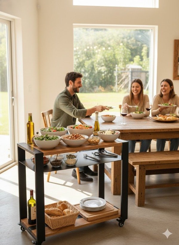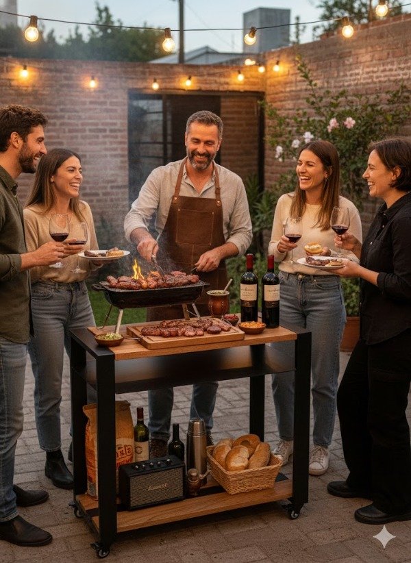 Usalo como estación de comida, estación de bebida, mesa auxiliar o leñero.