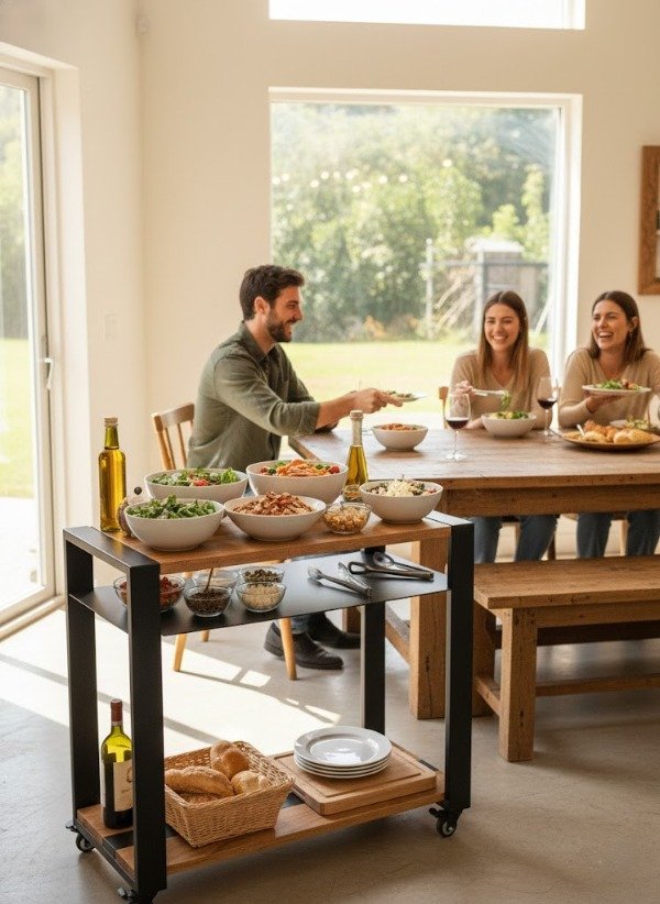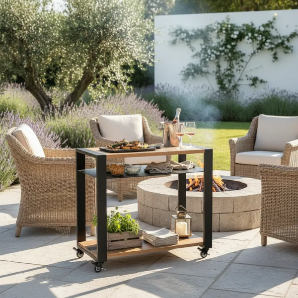 Usalo como estación de comida, estación de bebida o mesa de apoyo para el asador y leñero.