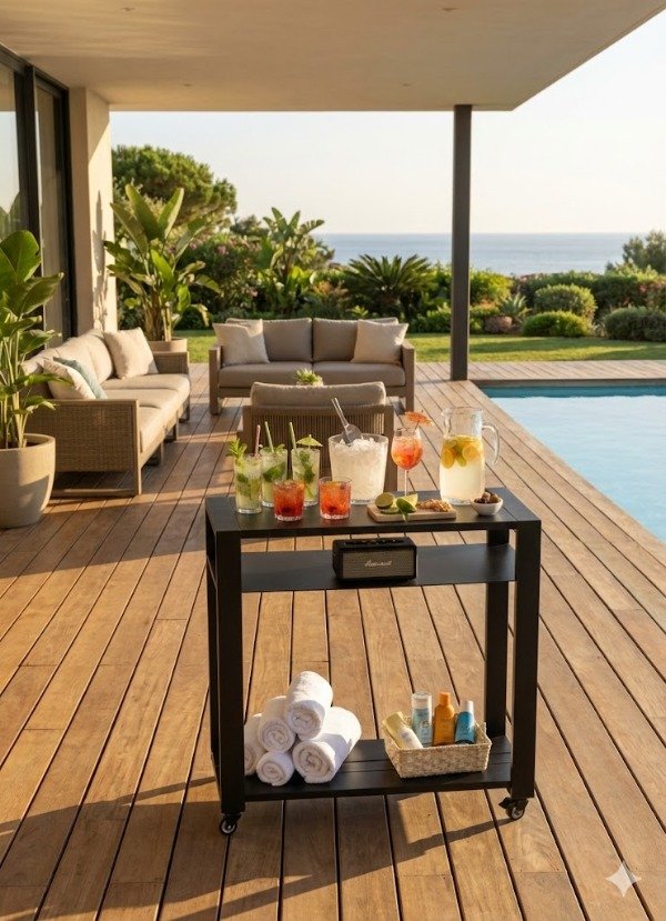 Usalo como estación de comida, estación de bebida o mesa de apoyo para el asador.